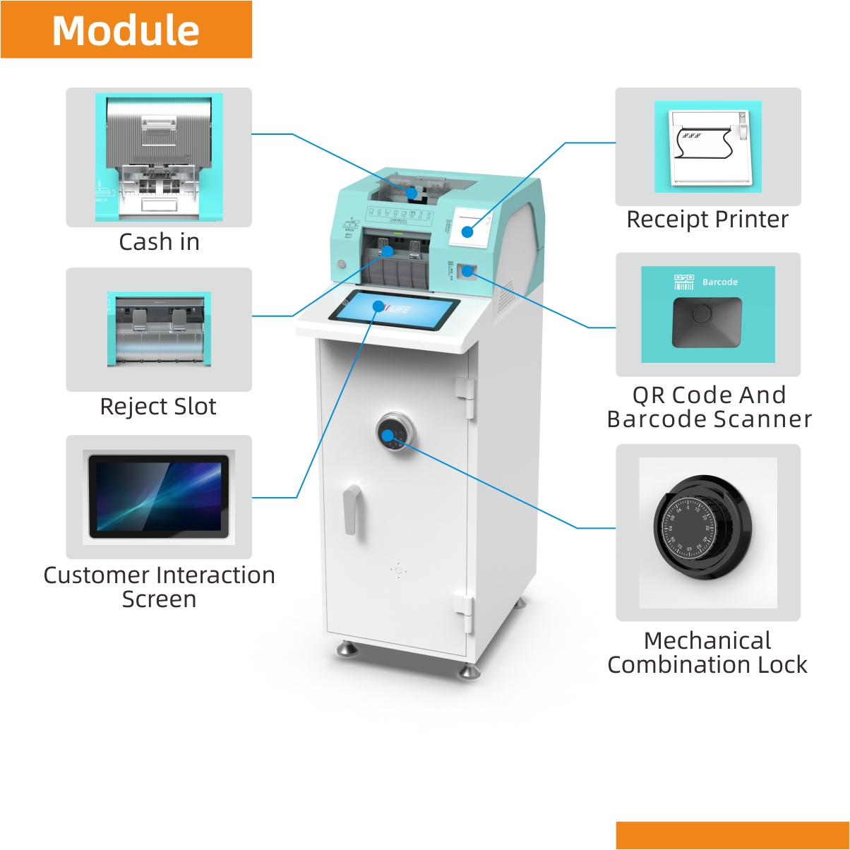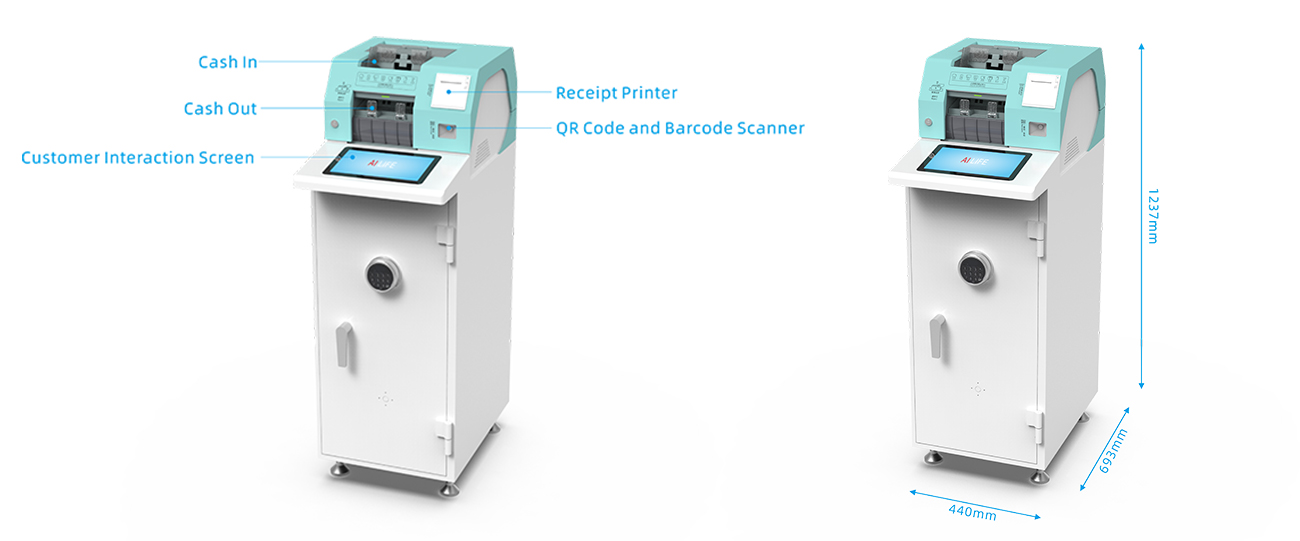 Security Assurance:Equipped with a safe and a mechanical combination lock to ensure the safety of funds. It can be expanded with sensors and biometric modules to provide higher security guarantees for different scenarios.
