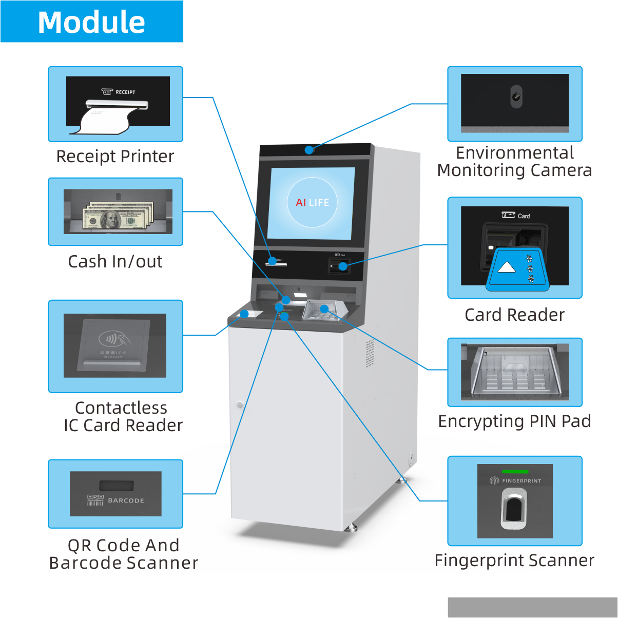 such as currency exchange, bill payment,card dispensing, coin dispensing as